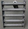 We had a Clearview Vision stove installed about 14 years ago and since then it's been one of the main sources of heat in the home, burning 3-4 tons of dried wood in a typical year. We've consumed two top baffle plates in that period, but the grate looks as good as new because from the outset I installed a home-made grate protector to preserve it (that's bristle from the brush, not a crack, top right of the photos). Contrast that with the state of the grate protector I just took out, originally made and repaired from bits of scrap steel. The old protector has burned paper-thin in places and has been patched a couple of times, but eventually has been junked and replaced - I am now on the third version of it.